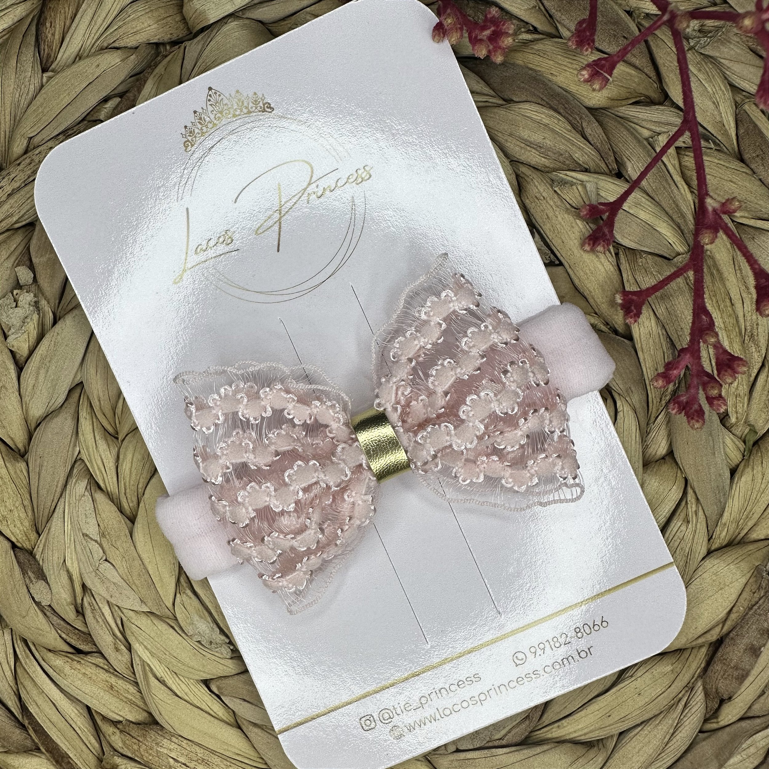 Laço Mila - confeccionado em fita importada e em faixa de seda que adapta conforme sua princesa for crescendo.