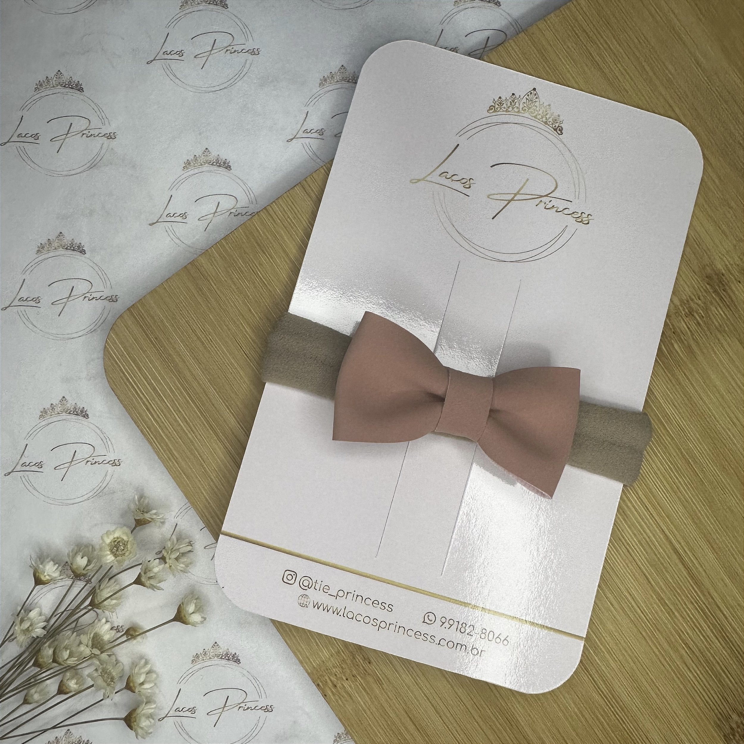 Laço Mirela Baby – confeccionado em couro ecológico e faixa de seda.